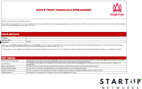 A structured financial planning spreadsheet designed to support entrepreneurs through the Kingโs Trust programme. This workbook includes tools for calculating your Personal Survival Budget, projecting costs and pricing, creating sales and cashflow forecasts, and breaking down funding requirements. Ideal for business planning, grant applications, or managing your startup finances with clarity and confidence.Free -
