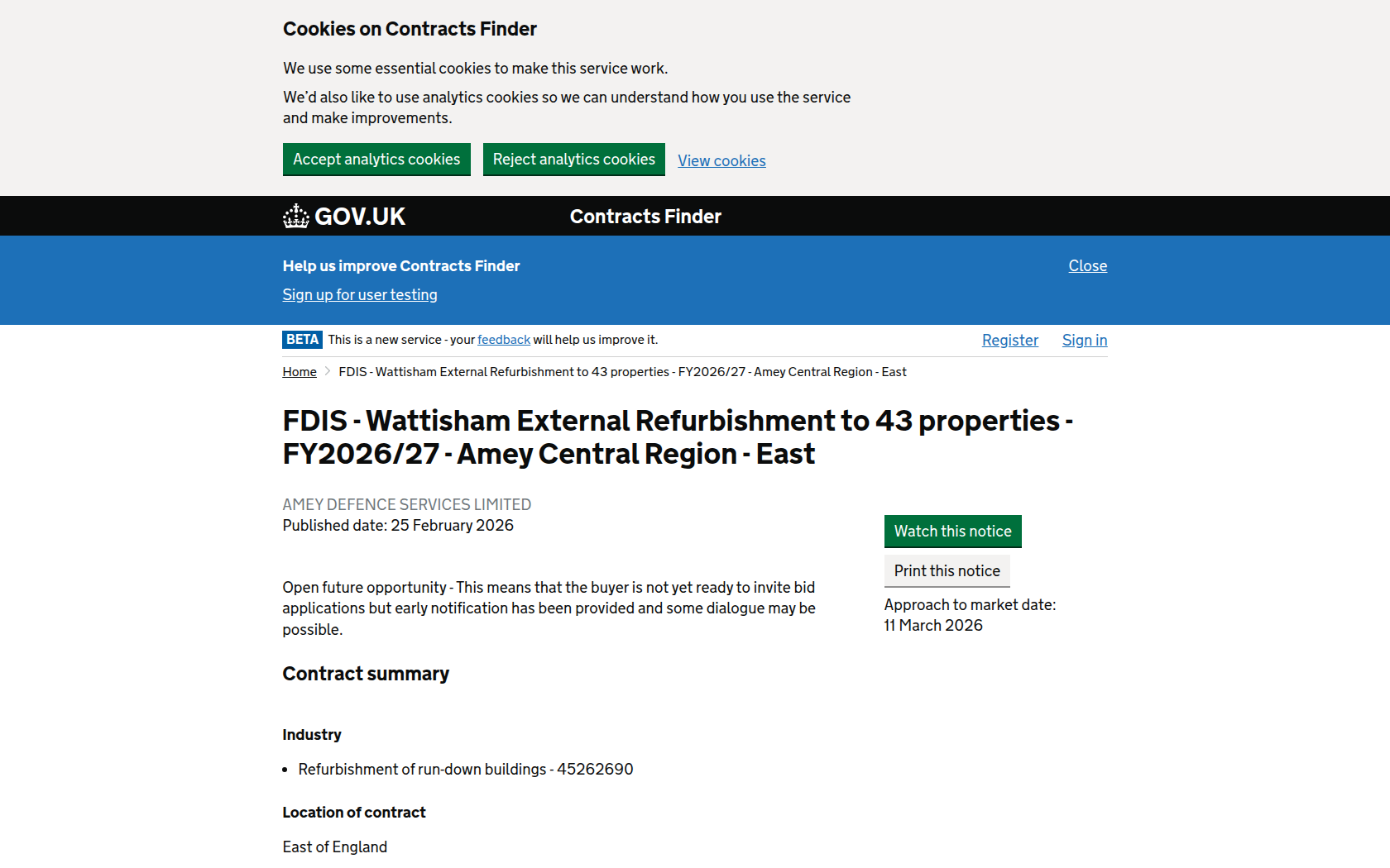 FDIS - Wattisham External Refurbishment to 43 properties - FY2026/27 - Amey Central Region - East