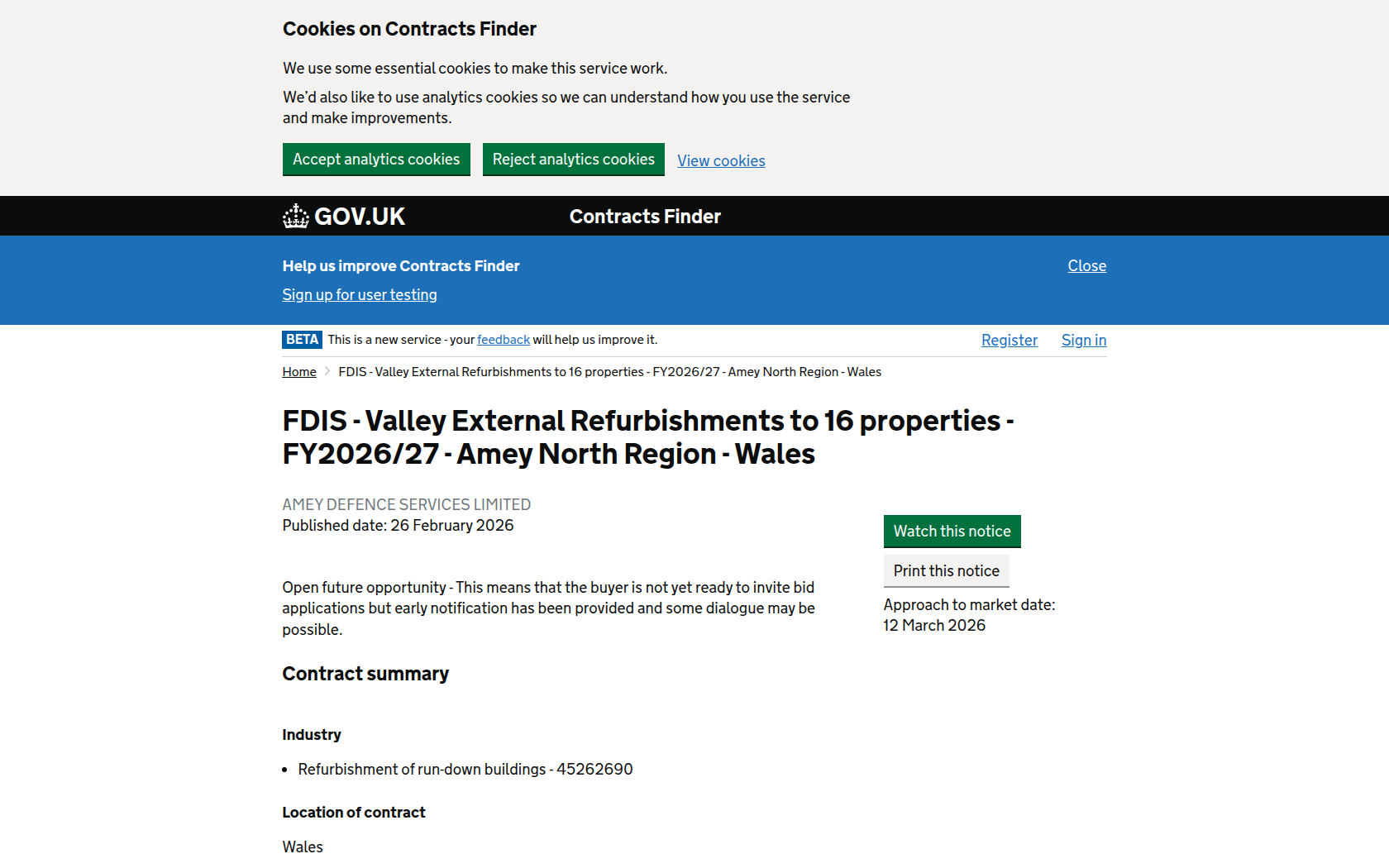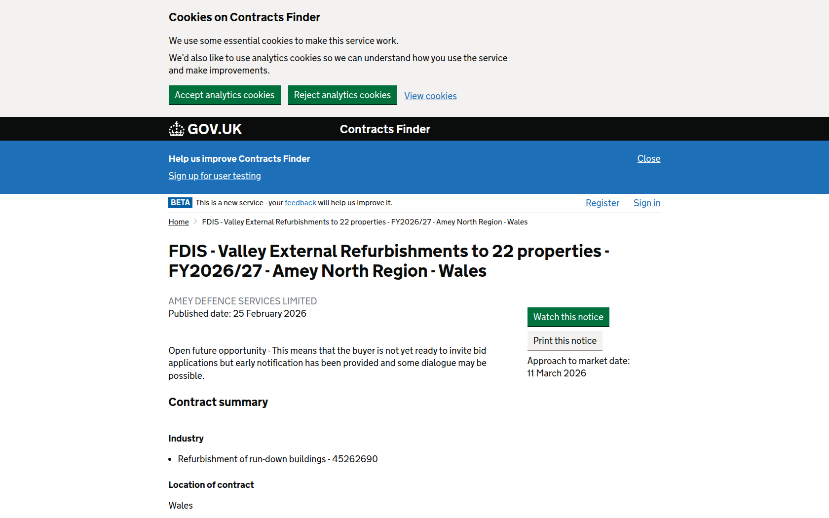 FDIS - Valley External Refurbishments to 22 properties - FY2026/27 - Amey North Region - Wales