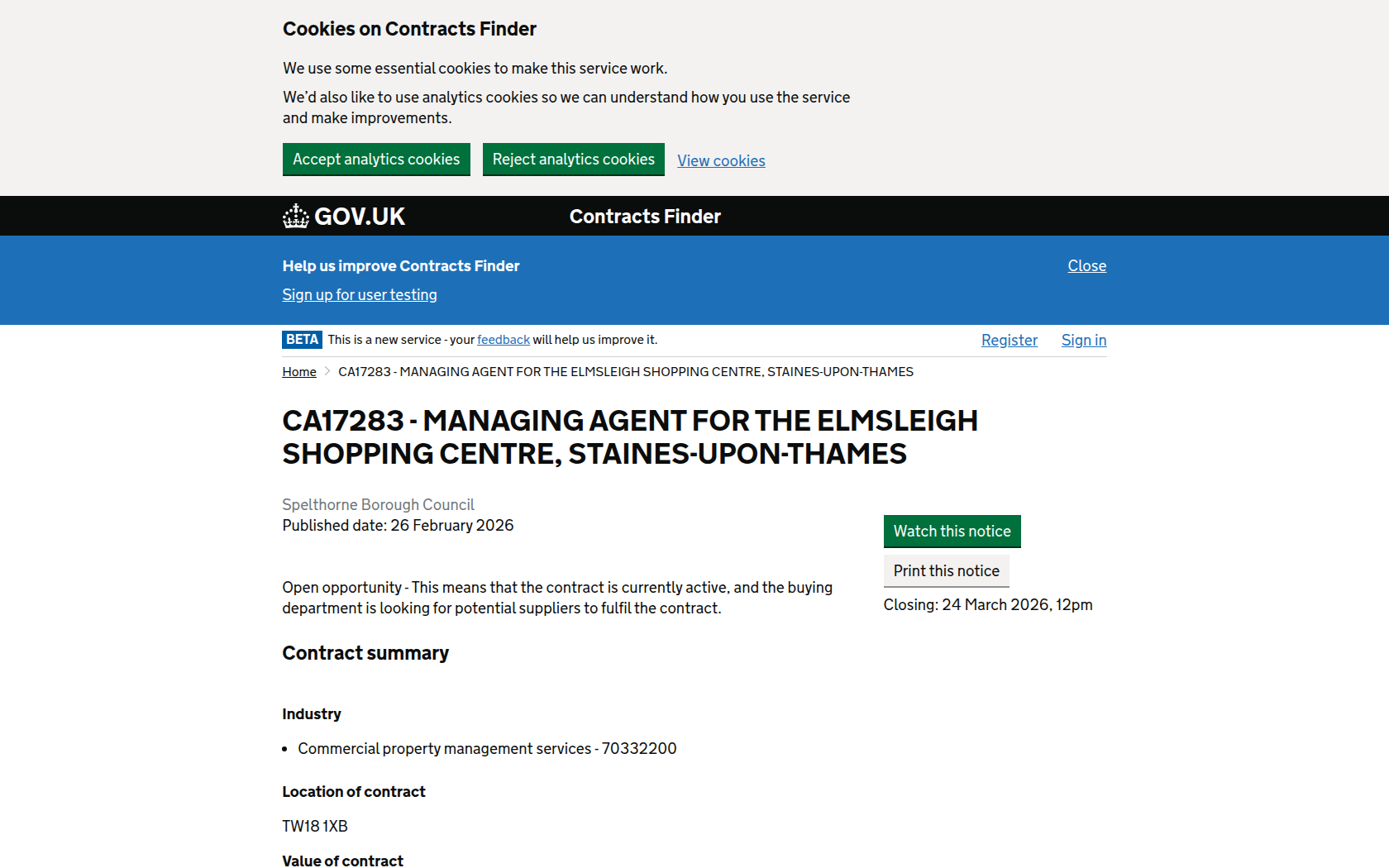 Property Management Consultancy for the Elmsleigh shopping centre Spelthorne Borough Council