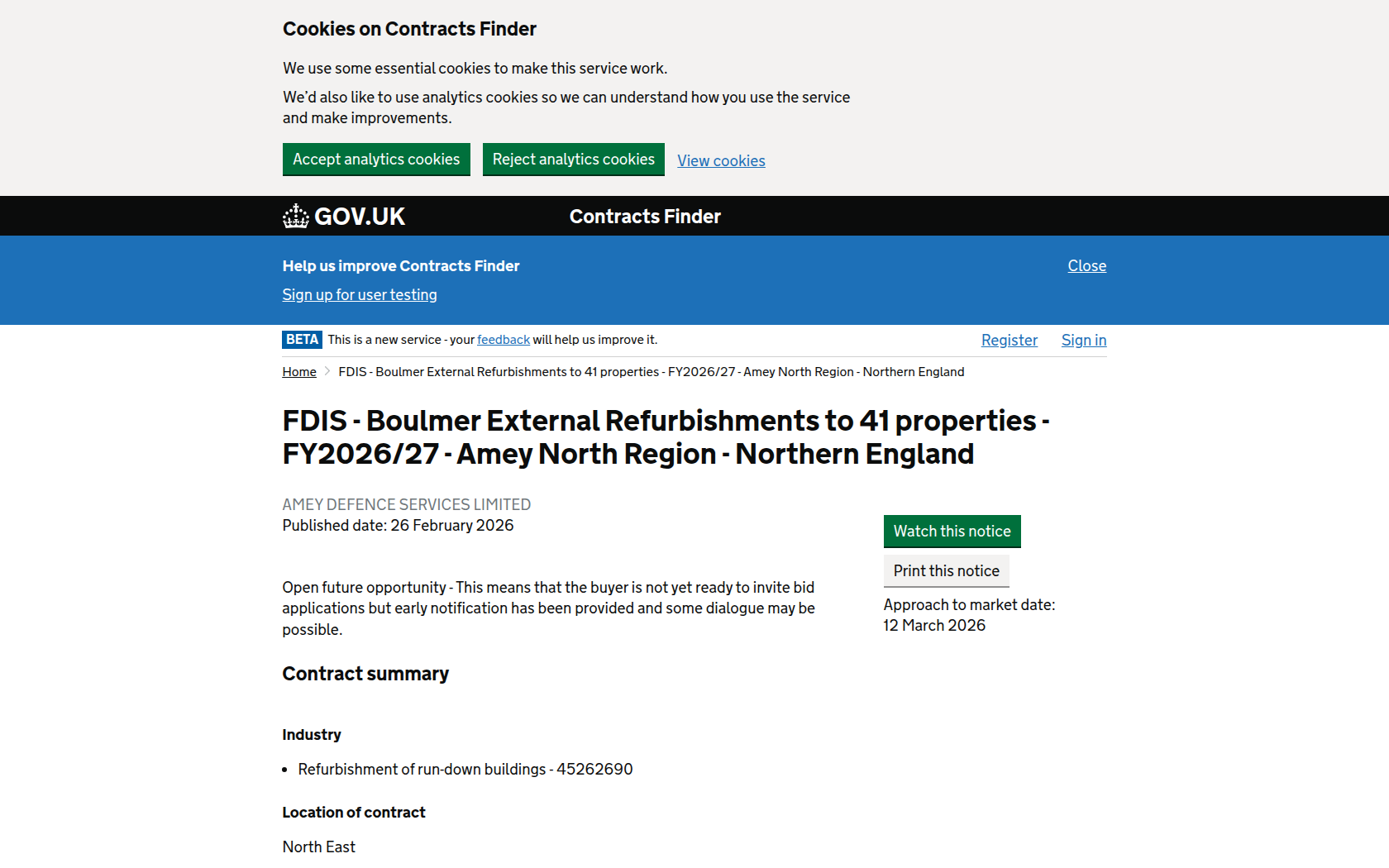 FDIS - Boulmer External Refurbishments to 41 properties - FY2026/27 - Amey North Region - Northern England