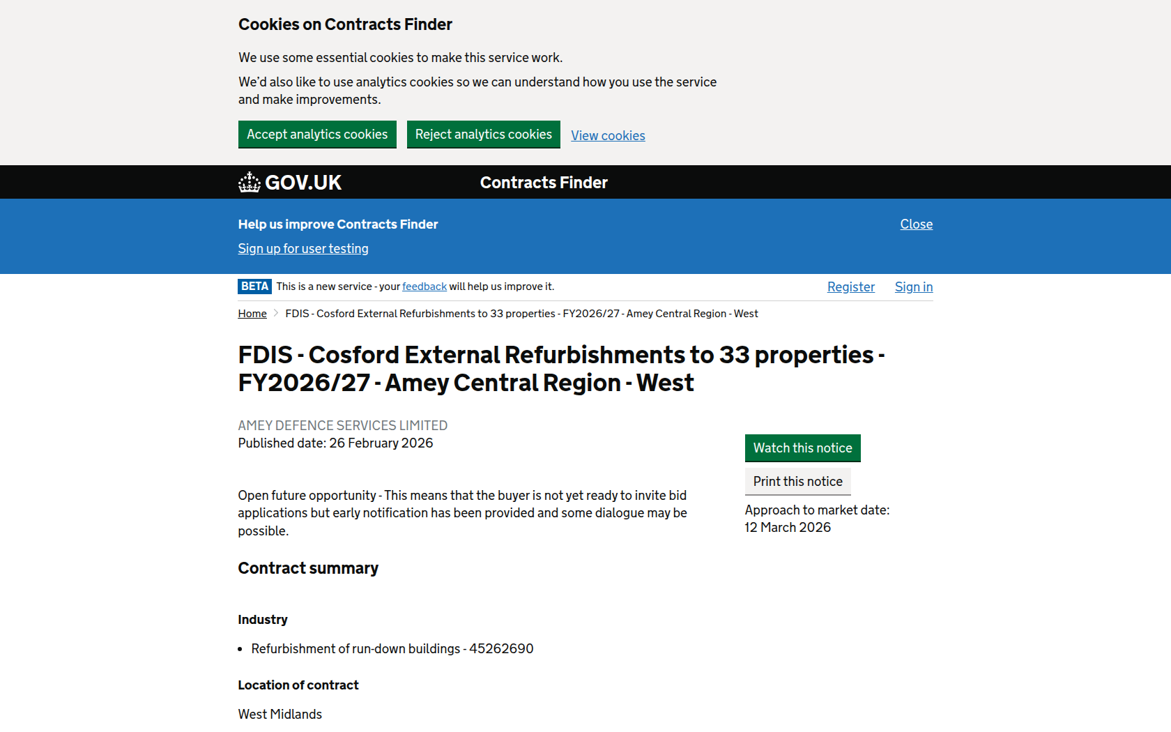 FDIS - Cosford External Refurbishments to 23 properties - FY2026/27 - Amey Central Region - West