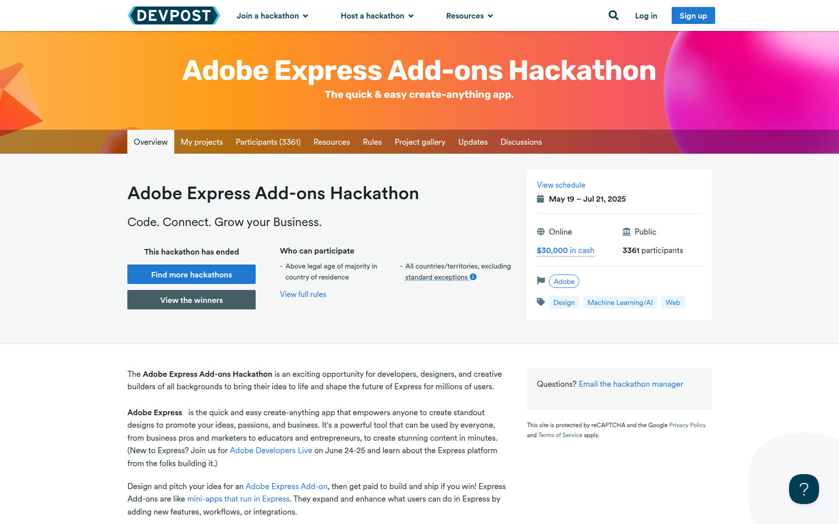 The Adobe Express Add-ons Hackathon is an exciting opportunity for developers, designers, and creative builders of all backgrounds to bring their idea to life and shape the future of Express for millions of users.