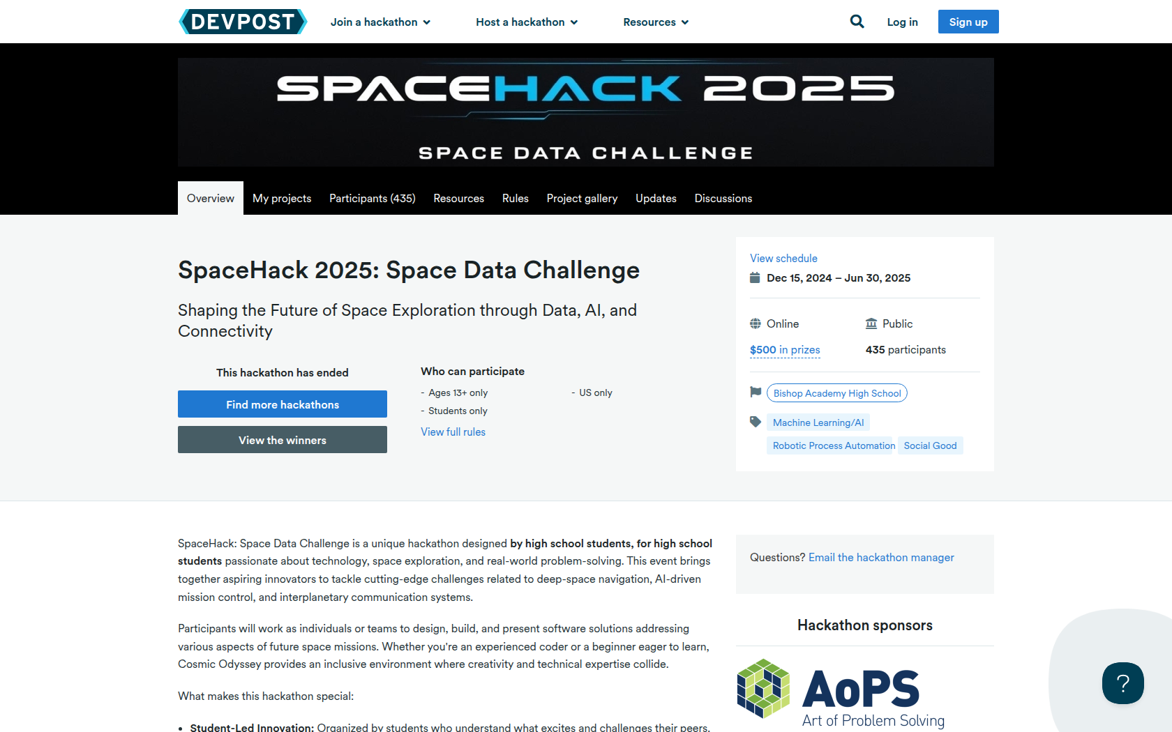 President - SpaceHacks, High School Senior