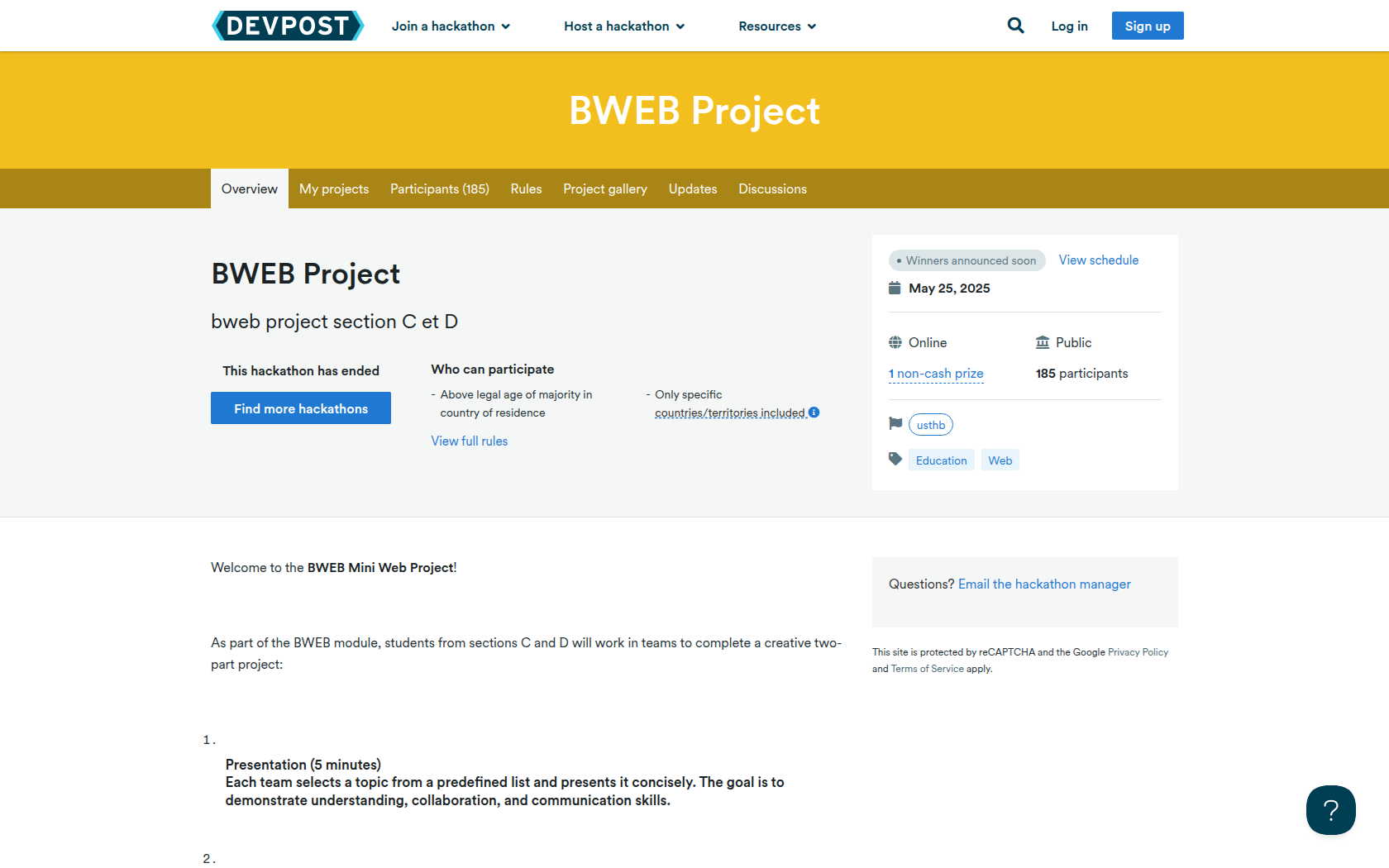 As part of the BWEB module, students from sections C and D will work in teams to complete a creative two-part project: