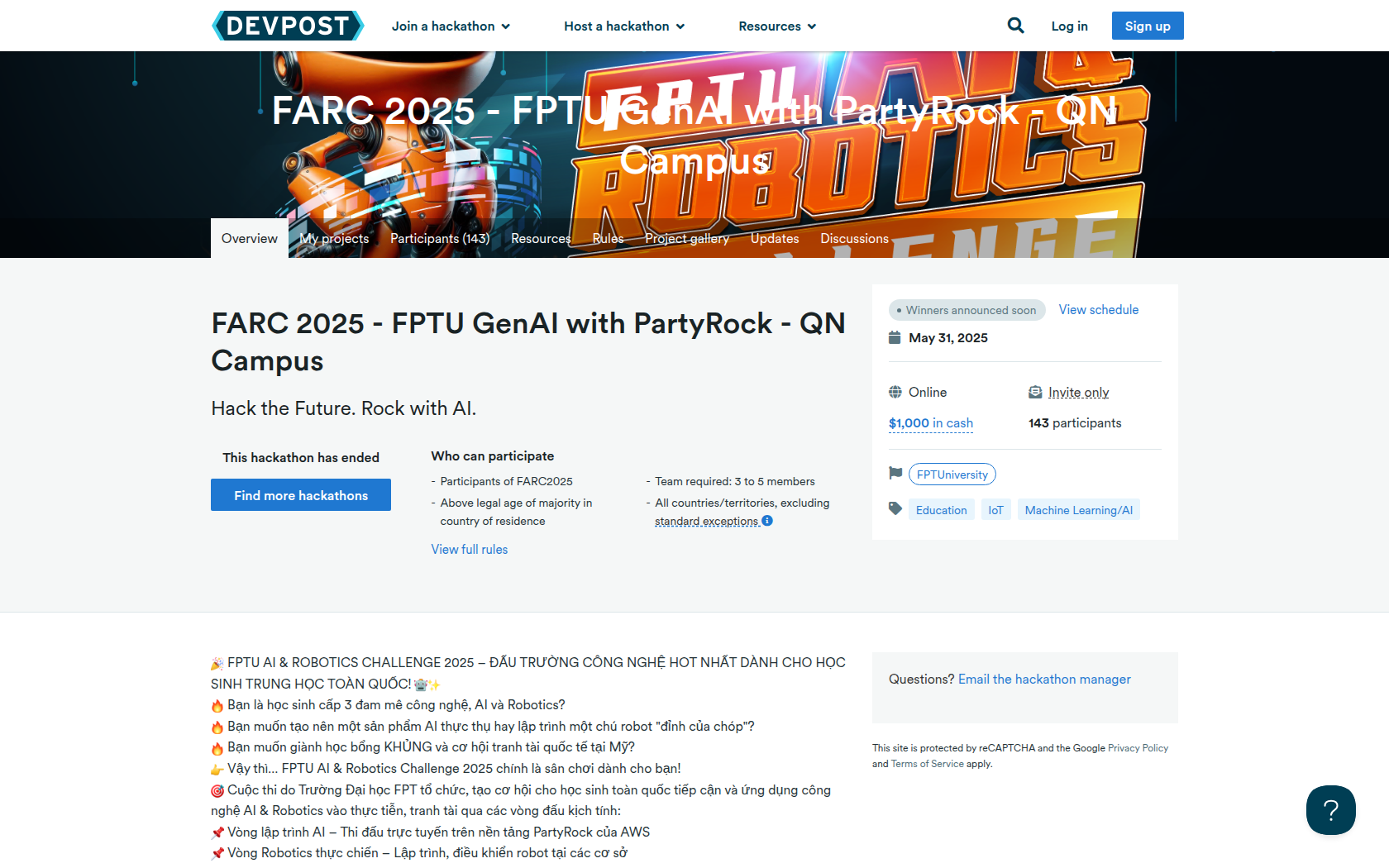 Cuộc thi do Trường Đại học FPT tổ chức, tạo cơ hội cho học sinh toàn quốc tiếp cận và ứng dụng công nghệ AI & Robotics vào thực tiễn, tranh tài qua các vòng đấu kịch tính: