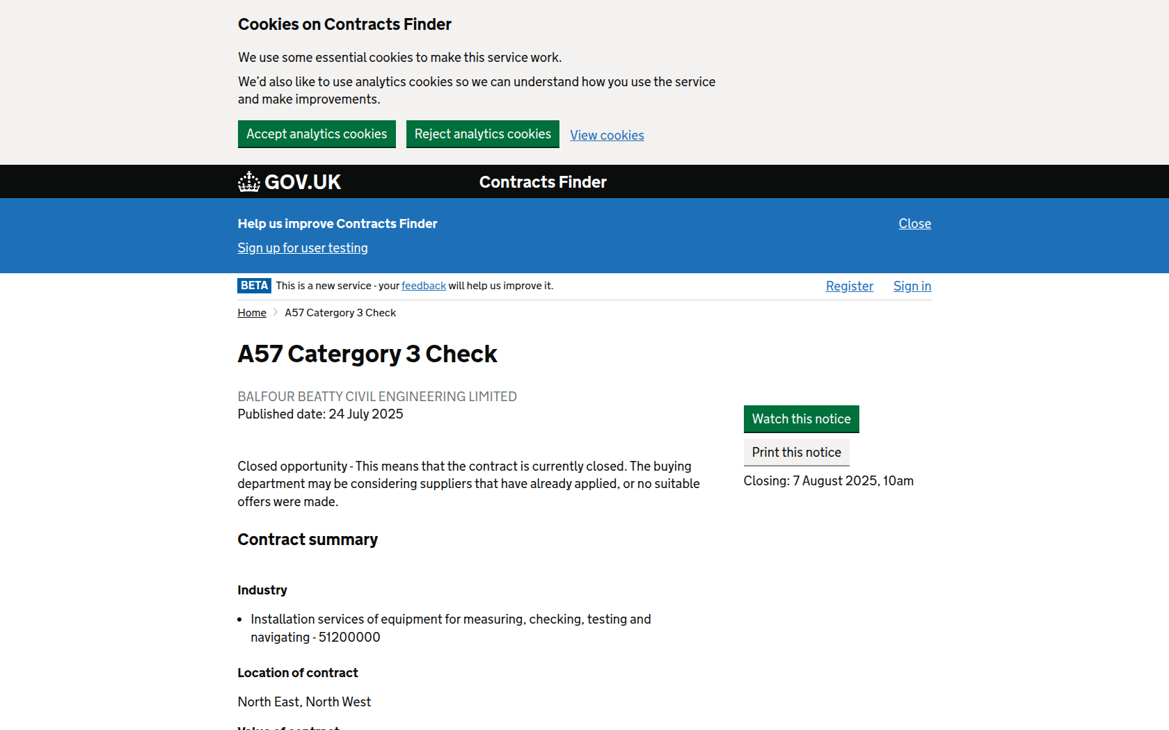 We are seeking to procure a specialist CAT 3 checker for our Temporary Bridge requirement on the A57 (T) to A57 Link Road scheme.