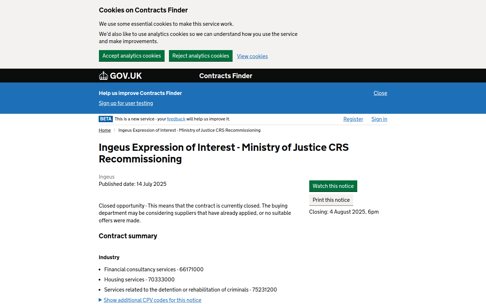 Ingeus is seeking potential supply chain partners for the next iteration of HMPPS Commissioned Rehabilitative Services for men in prison or the community. The ITT for these services is projected to launch in September 2025.