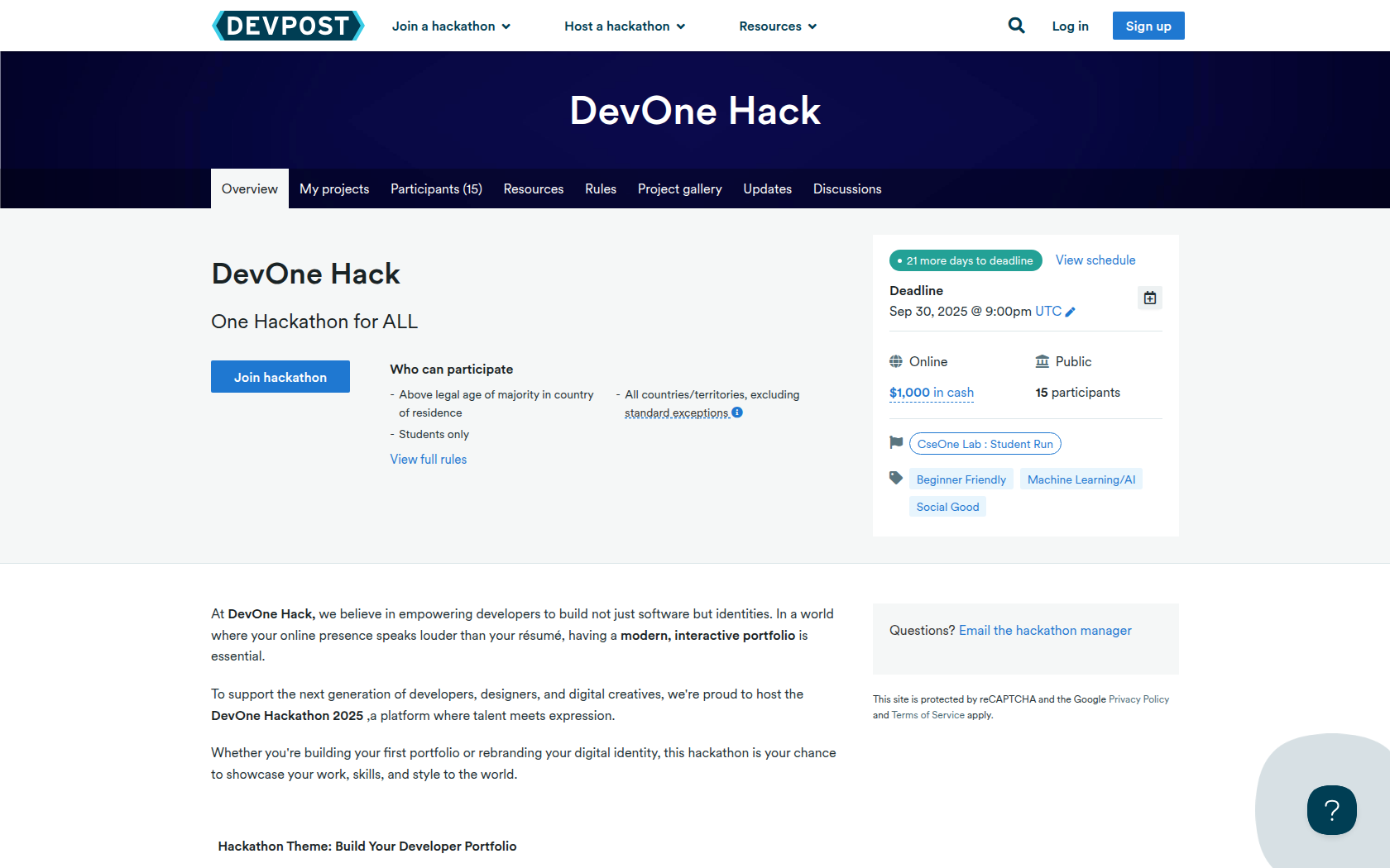 Whether you're building your first portfolio or rebranding your digital identity, this hackathon is your chance to showcase your work, skills, and style to the world.
