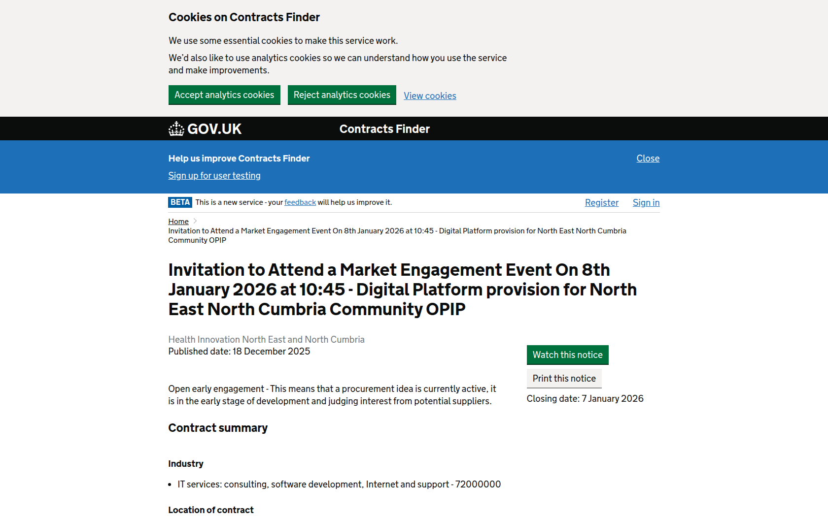 This Market Engagement Event is intended to help NENC ICB understand the capabilities, innovations and constraints within the digital health market, and to test our emerging requirements and delivery approach. Feedback from suppliers will be used to refine any future specification and procurement strategy for these services.