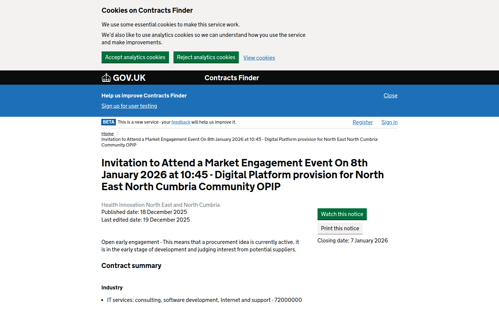 This Market Engagement Event is intended to help NENC ICB understand the capabilities, innovations and constraints within the digital health market, and to test our emerging requirements and delivery approach. Feedback from suppliers will be used to refine any future specification and procurement strategy for these services.