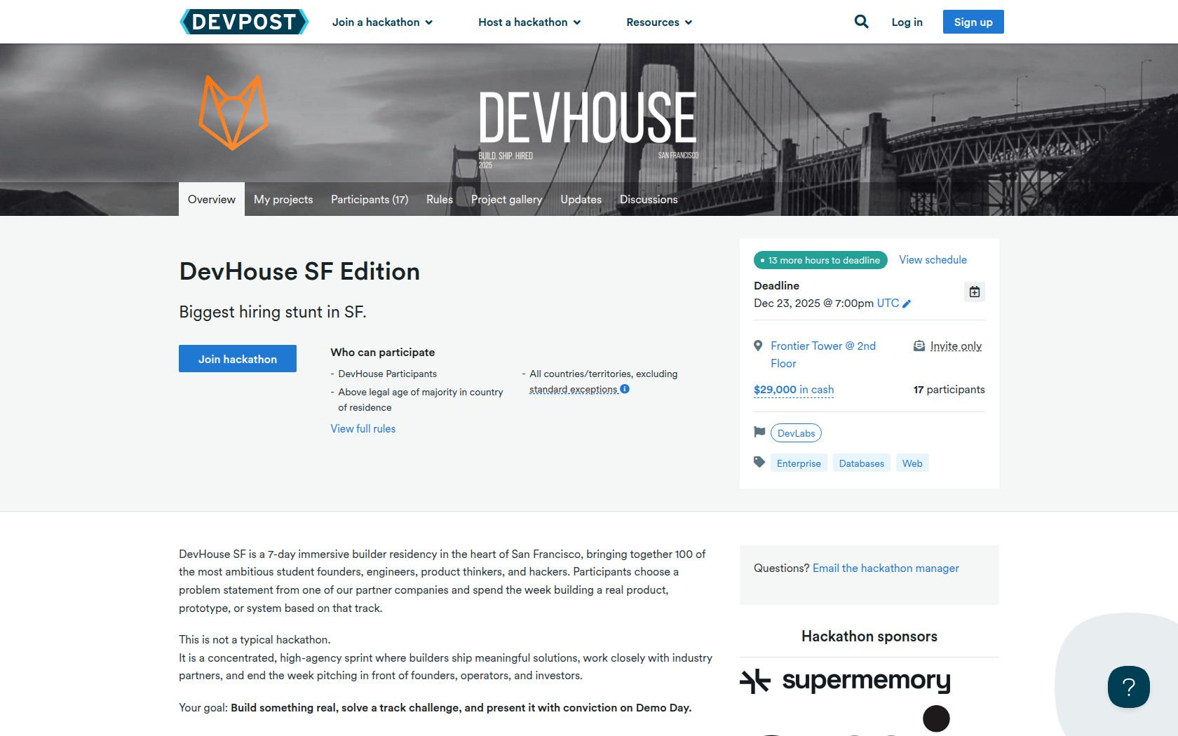 Projects must be fully developed during the DevHouse SF event week.