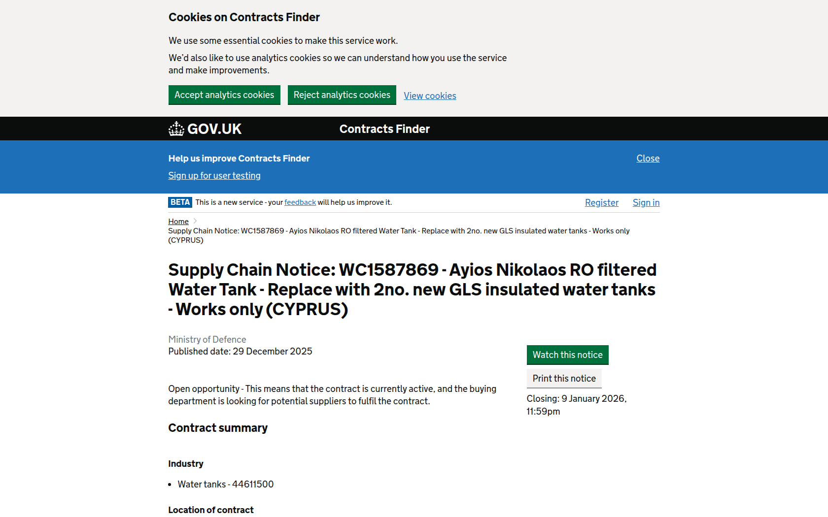 - Contract award: 27/3/2026