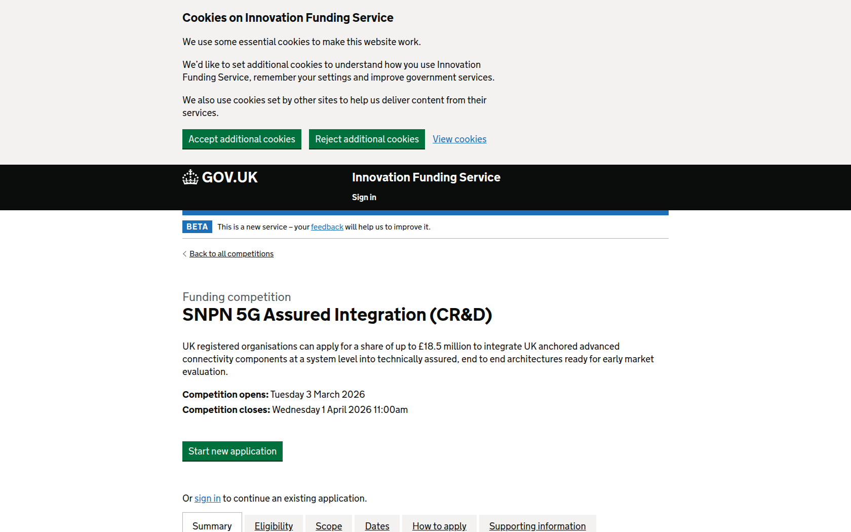 UK registered organisations can apply for a share of up to ยฃ18.5 million to integrate UK anchored advanced connectivity components at a system level into technically assured, end to end architectures ready for early market evaluation.