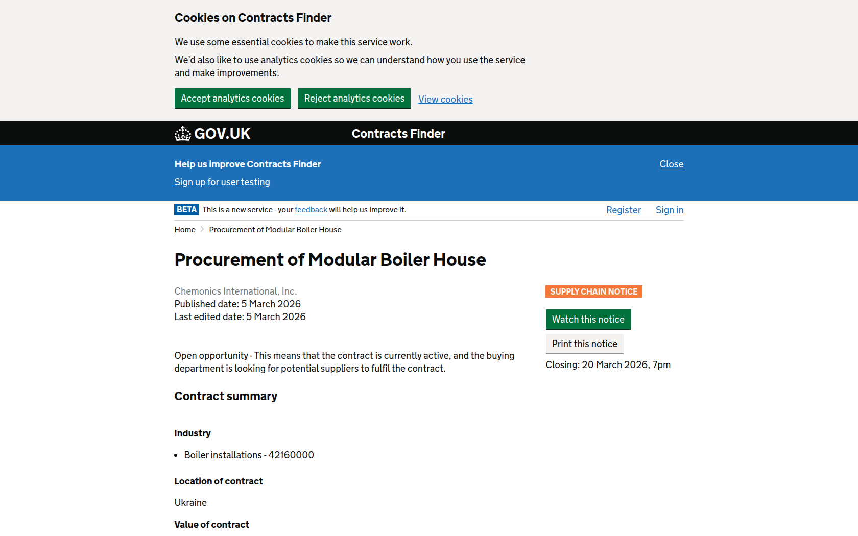 โข all questions regarding the tender conditions must be submitted no later than March 13, 2026, at 18:00 Kyiv time;