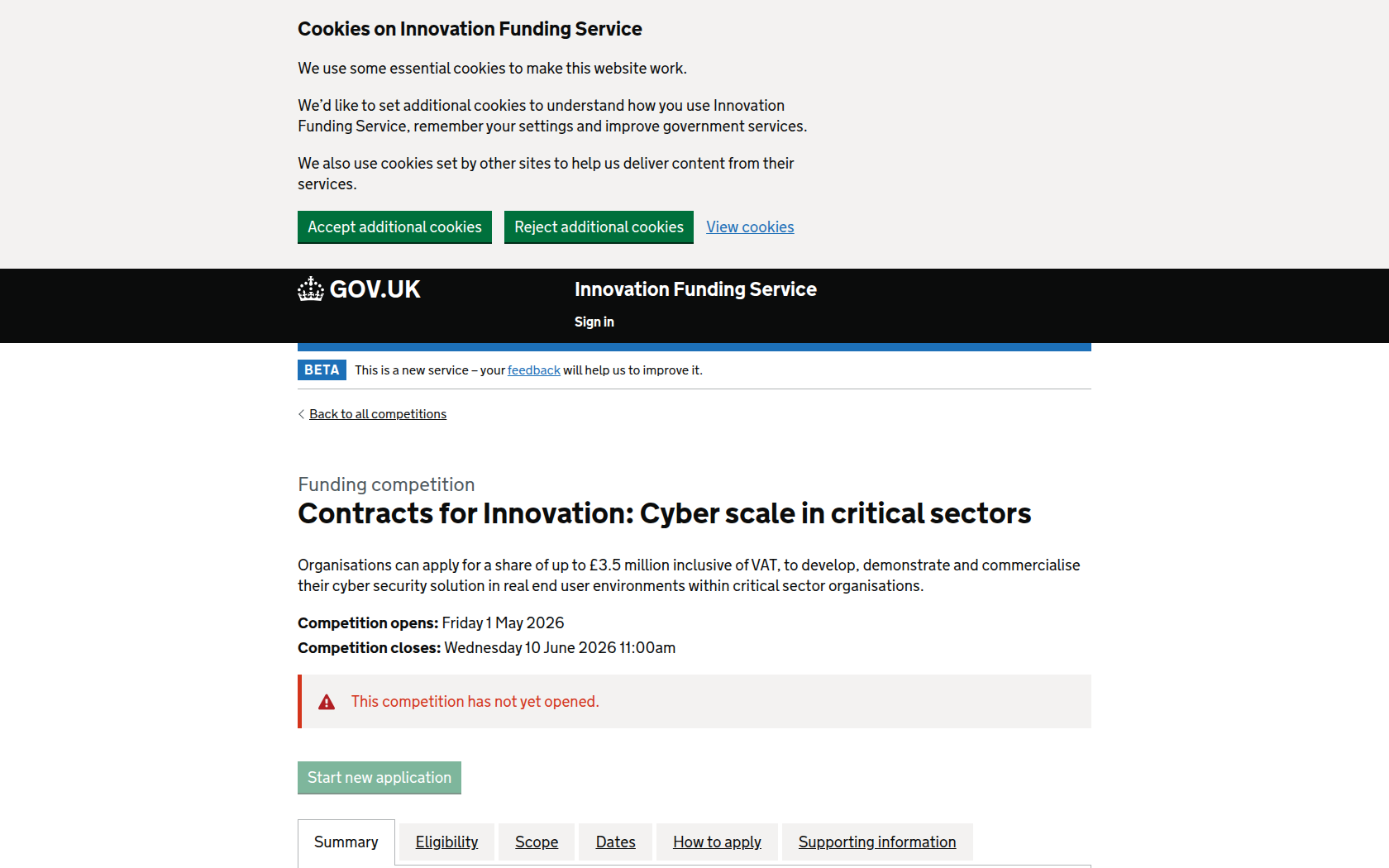 Organisations can apply for a share of up to ยฃ3.5 million inclusive of VAT, to develop, demonstrate and commercialise their cyber security solution in real end user environments within critical sector organisations.