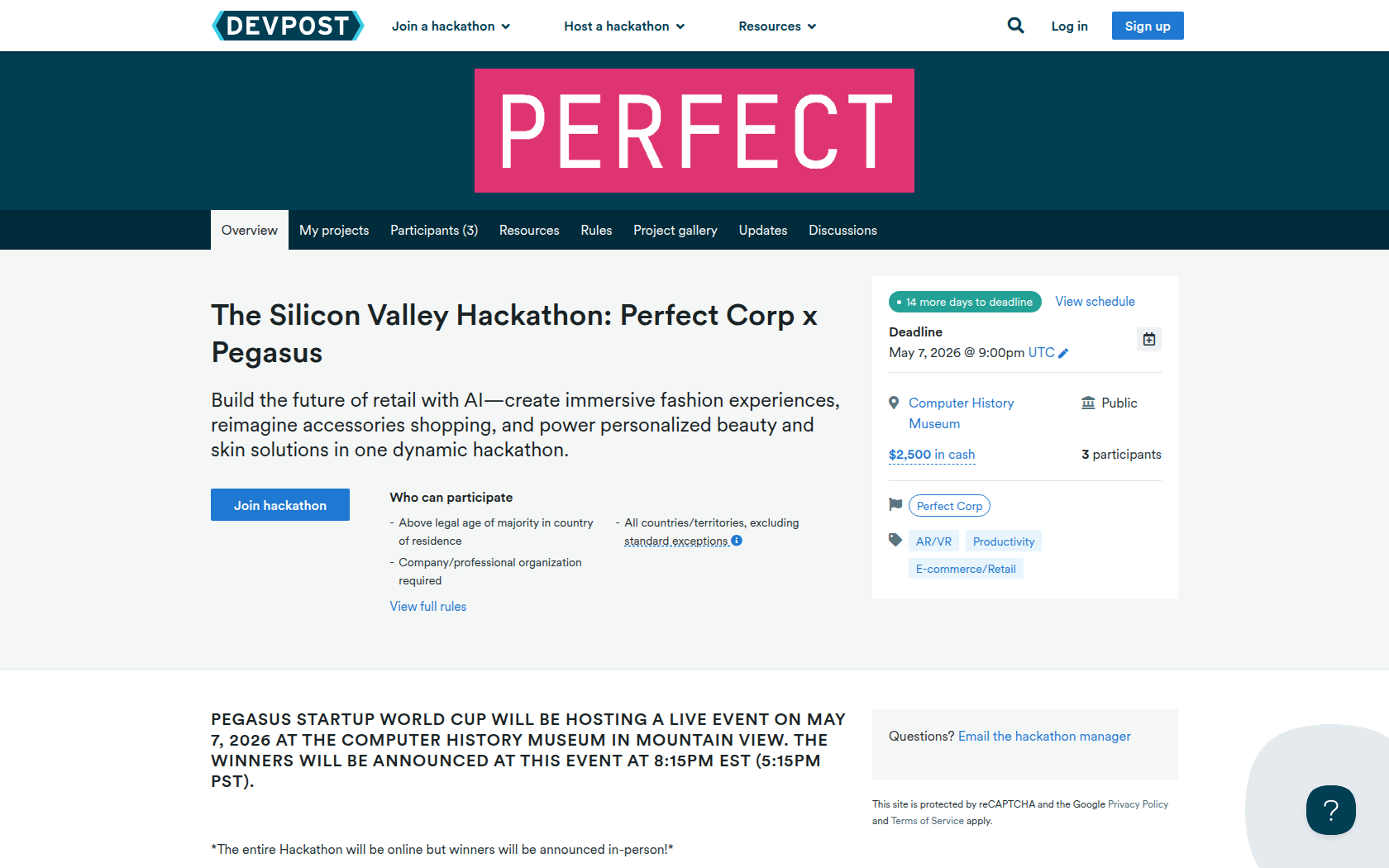 Pegasus Startup World Cup will be hosting a live event on May 7, 2026 at the Computer History Museum in Mountain View. The winners will be announced at this event at 8:15PM EST (5:15PM PST).
