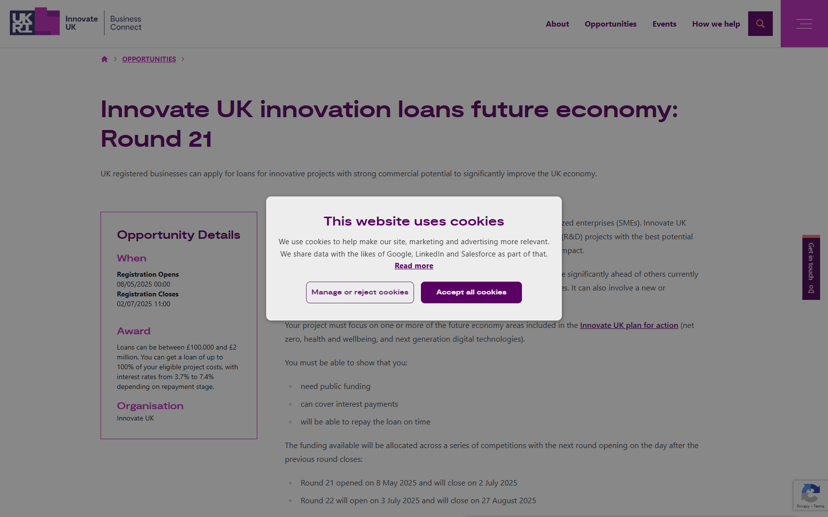 Innovate UK is offering up to ยฃ25 million in loans to micro, small and medium sized enterprises (SMEs). Innovate UK innovation loans are for highly innovative late stage research and development (R&D) projects with the best potential for the future. There must be a clear route to commercialisation and economic impact.