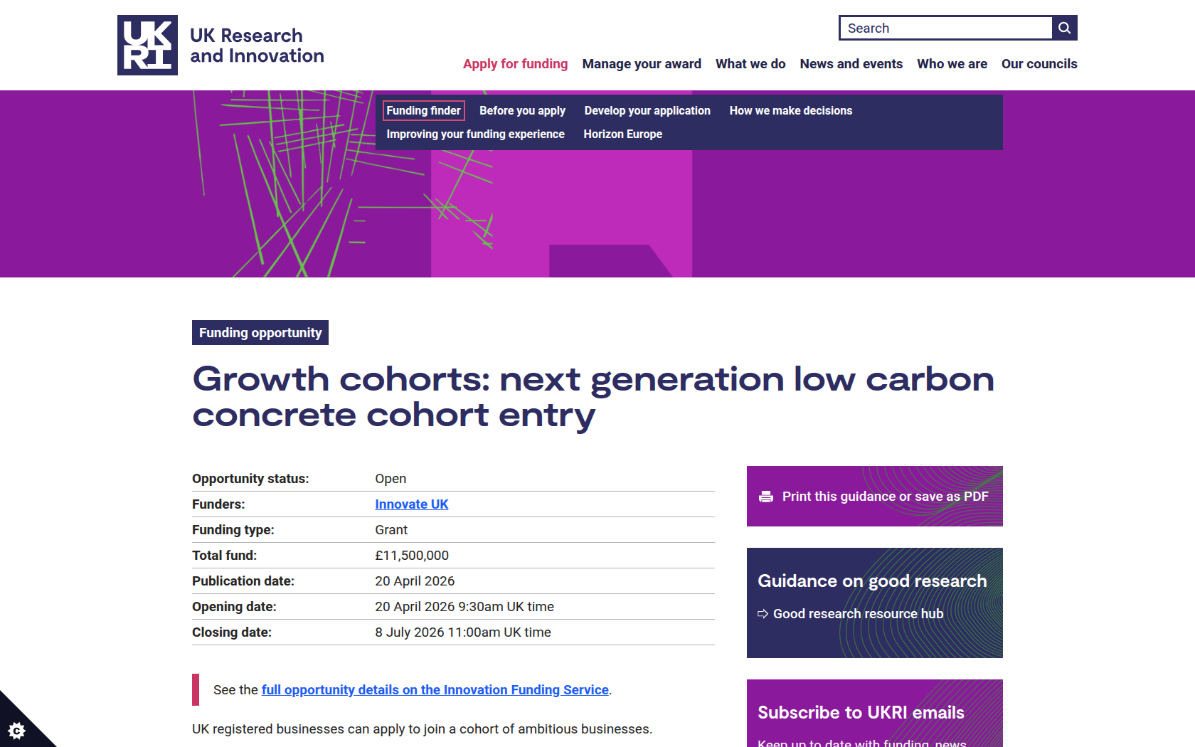 Funding opportunity: Growth cohorts: next generation low carbon concrete cohort entry